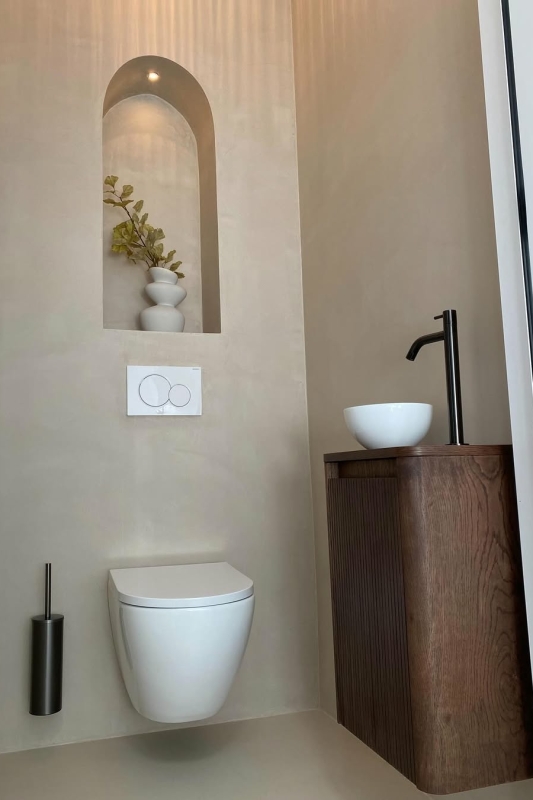 Het resultaat is een rustige, minimalistische basis die perfect past bij een zen wc interieur. En het mooiste: je hebt geen professional nodig. Met een beetje geduld en een YouTube‑tutorial kom je een heel eind.