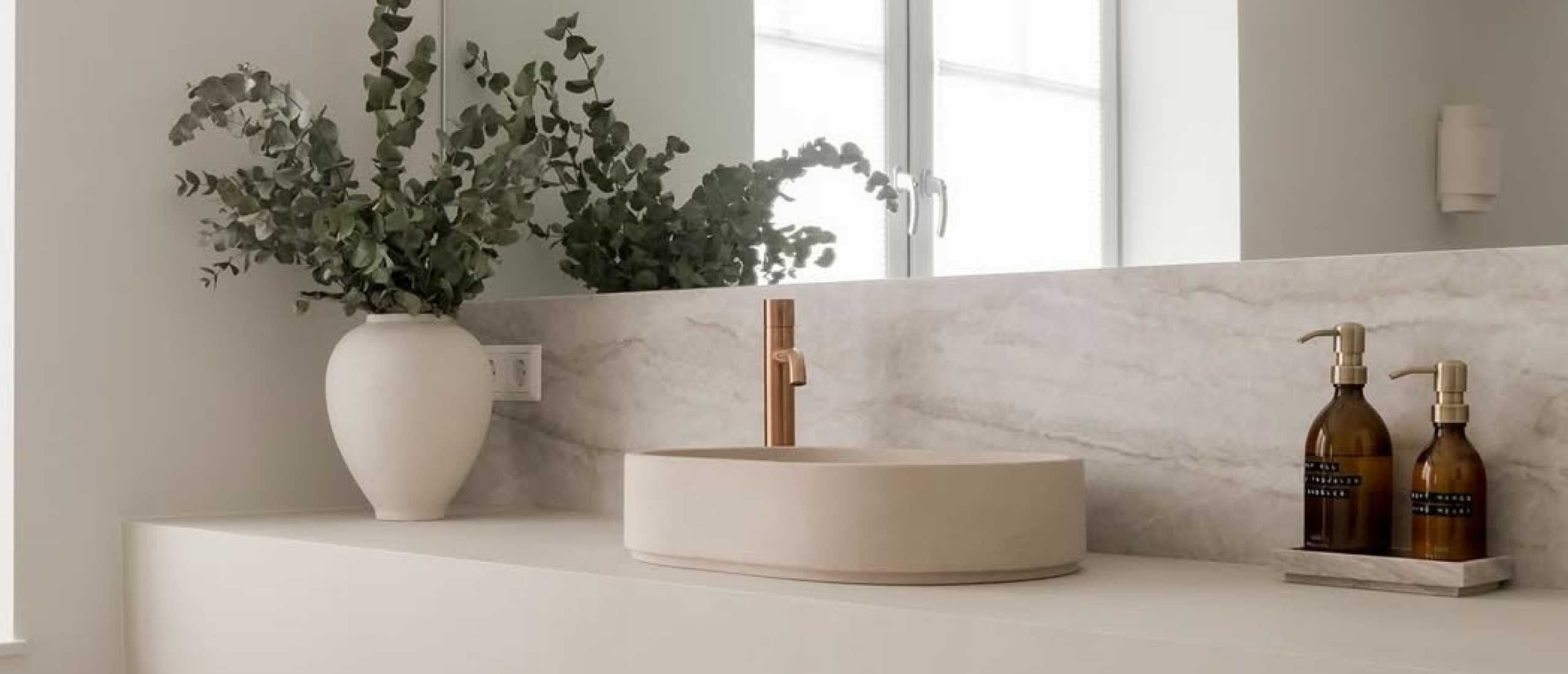 Een houten plankje, een bamboe toiletrolhouder of een klein natuurstenen fonteintje zijn simpele toevoegingen die meteen verschil maken.