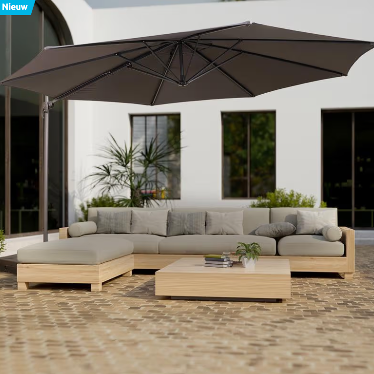 Als je een betaalbare, stijlvolle en ruime zweefparasol zoekt die je terras direct een luxe uitstraling geeft, dan is deze Action XL parasol in antraciet een hele sterke keuze. Je krijgt veel schaduw, handige functies zoals draaien en kantelen en een doek met UV80, waardoor hij qua comfort niet onderdoet voor duurdere modellen. Zet hem wel meteen goed neer met de juiste parasolvoet en klap hem in bij wind, dan heb je er de hele zomer plezier van.